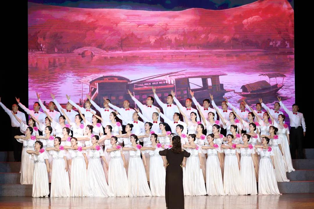 60余位來自科研、生產(chǎn)、管理一線的職工,在沒有任何聲樂基礎(chǔ)的條件下,憑借著一種責(zé)任、一種普通黨員和職工群眾對黨的熱情走到了一起,大家克服工作、生活中的種種困難積極參加排練,相互學(xué)習(xí),反復(fù)練唱,加班練習(xí),大家只有一個心愿,站在舞臺上為黨歌唱!精心打磨、嚴(yán)格嚴(yán)厲,只為呈現(xiàn)最完美的演出效果。