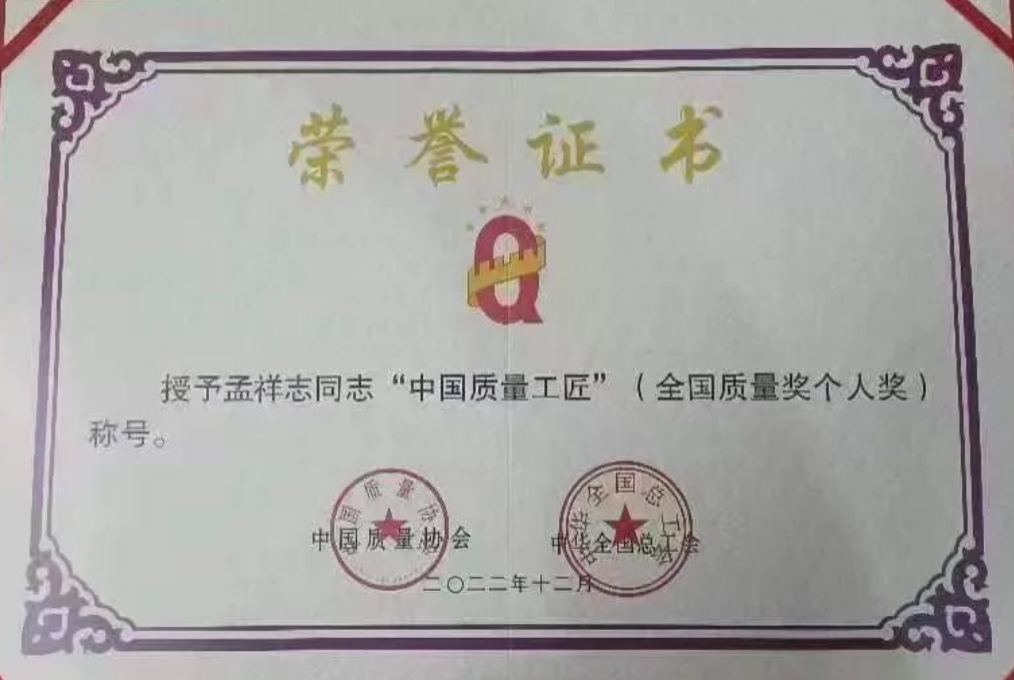 近日,2022中國質量協會年會在線舉行,會上發布了中國質量協會聯合中華全國總工會開展的第二十屆全國質量獎(2022-2023年)個人獎獲獎名單,中國兵器工業集團華安集團車工、高級技師孟祥志憑借突出的工作業績和過硬的技術能力,榮獲“中國質量工匠”稱號。本次“中國質量工匠”評選,全國僅有20人獲此殊榮,這也是繼榮獲“中華技能大獎”等榮譽后,孟祥志獲得的又一項全國大獎。